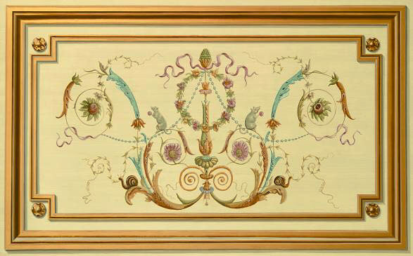 Reproduction  of  panel from the Palace de la Concorde, 17th Century with hand painted trompe l’oeil gold frame.