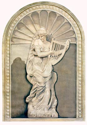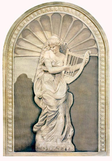 Canzone De Sera “Songs in the night” grisaille niche, containing a statue of a woman with harp. In the style of Paolo Veronese 15th century.