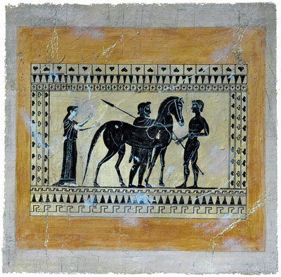 Ancient Greek wall fresco. This style of painting is an example from pottery around the period 400 B.C.