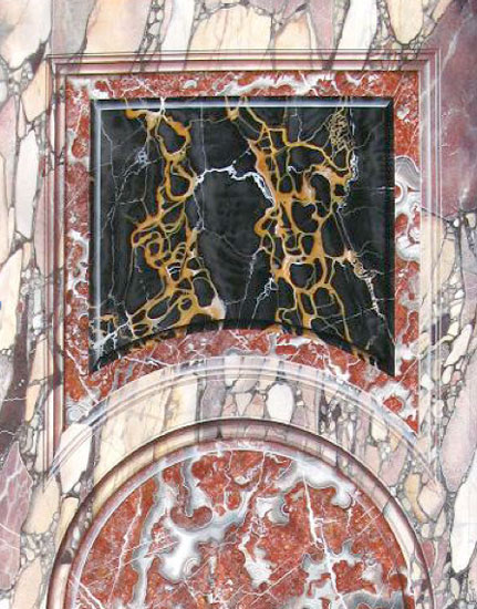 Large - Three detailed marbles. Violette breccia, rouge royal and portoro with bas relief molding.