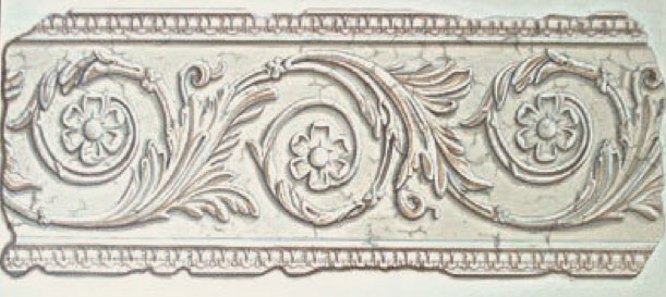 This ornament style depicts a scroll growing out of another scroll encircling a flower